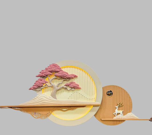 Modern 3D Wall Art with LED Moon and Bonsai Design