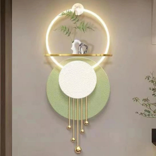 Decor Metal Wall Art Sculpture Wall Hanging: Abstract Showpiece with LED Light - Green Circle