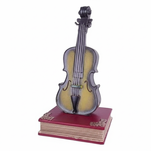 Miniature Violin on Open Book – Timeless Musical Elegance
