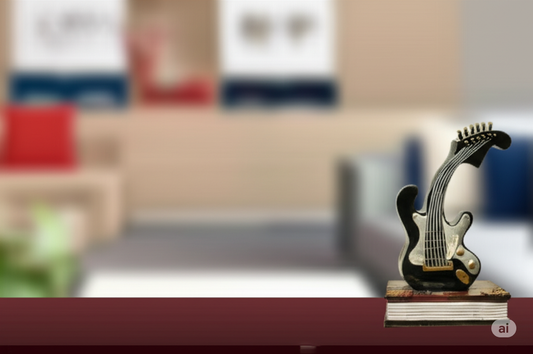 Miniature Electric Guitar on Book – Rock 'n' Roll Accent