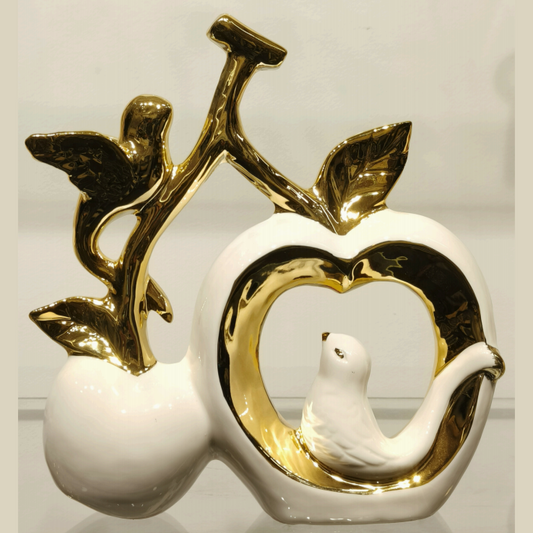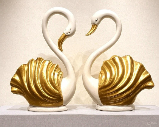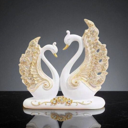 Elegant White Swans Sculpture with Gold Accents - Symbol of Love
