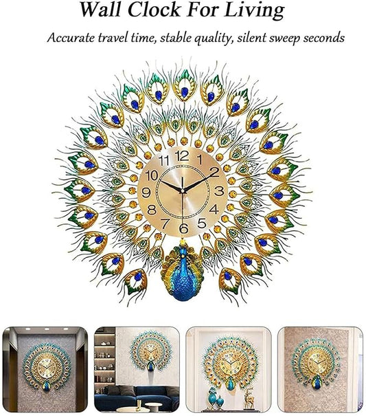 Luxurious Peacock-Themed Silent Wall Clock 65cm x 65cm