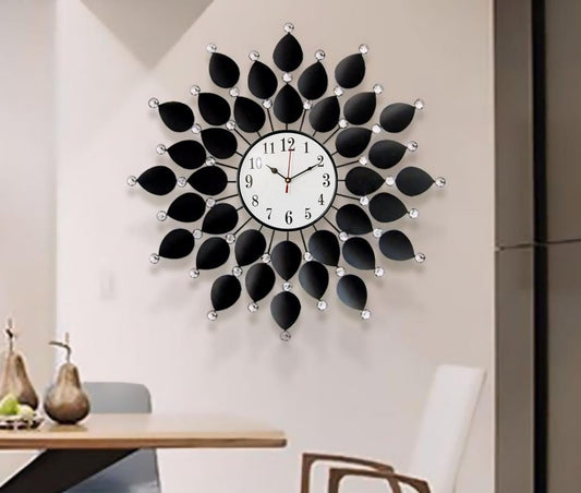 Midnight Bloom - Modern Wall Clock with Crystal Accents