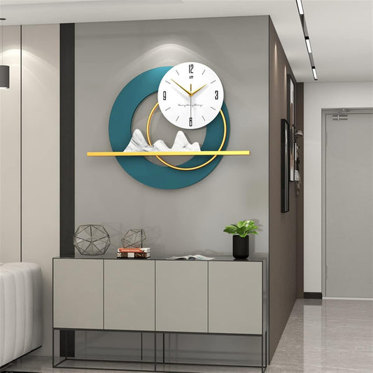 Forest Reverie - Modern Abstract Wall Clock with Shelf