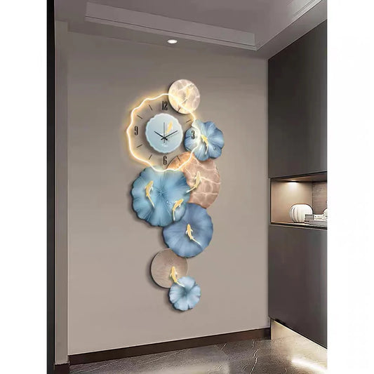 Modern Luxury Fish and Flower Wall Clock with LED Backlight