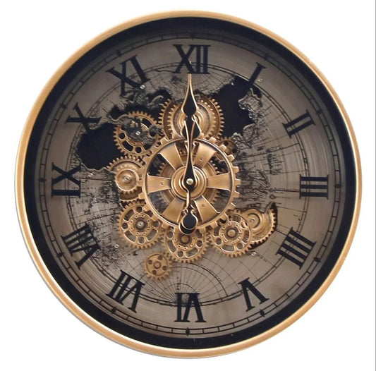 "World Traveler" Steampunk Gear & Map Wall Clock