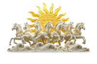 Rich & Contrasting Palette: The pristine white of the horses dramatically stands out against a deep, warm brown background, with a luminous golden circle adding a luxurious and vibrant contrast.