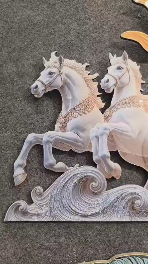 Dynamic 3D Sculpted Horses: A herd of majestic horses is intricately sculpted in high-relief, offering exceptional texture, movement, and a powerful, lifelike presence.