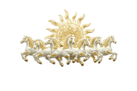 A captivating piece that embodies Horizontal Elegance and dynamic energy. This stunning artwork features a magnificent herd of white 3D sculpted horses, captured in mid-gallop, surging forward from a lush landscape. The background is a rich, warm brown, beautifully contrasting with the pristine white of the horses. A prominent circular motif in golden hues, subtly illuminated by integrated LED lighting and without LED , provides a brilliant focal point behind the horses, creating a breathtaking and vibrant scene. This large horizontal artwork is perfect for adding a sense of power, freedom, and sophisticated glow to your living room or study.