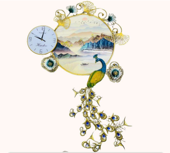 - Captivating Design: The clock showcases a mesmerizing design featuring a vibrant peacock perched amidst a tranquil landscape, creating a visual masterpiece that evokes a sense of serenity.