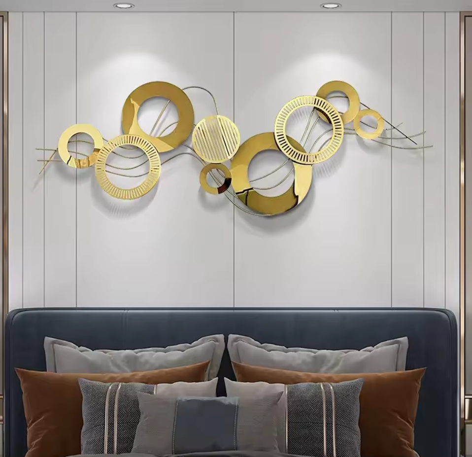 Transform your walls with the "Golden Orbit" Modern Abstract Metal Wall Sculpture. Order now to bring a touch of contemporary flair to your home or office!