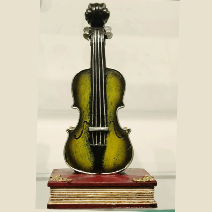Bring a harmonious blend of music and vintage charm to your surroundings with this unique Miniature Cello on Book. Order now and let its artistic presence enrich your space.