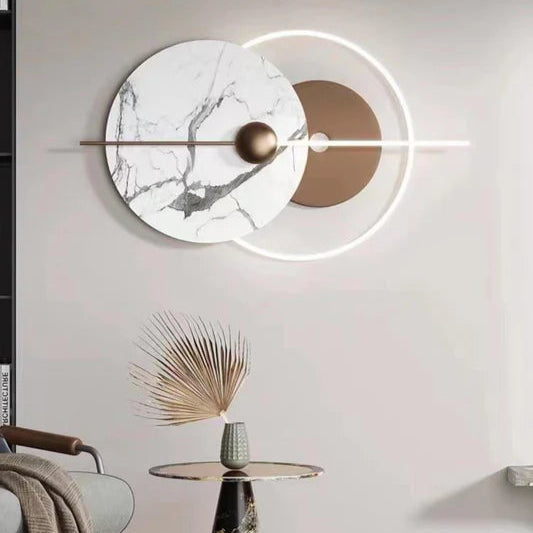- Abstract Design: A captivating arrangement of a marble-textured circle, a contrasting metallic element, and an integrated LED light creates a visually striking and modern aesthetic.