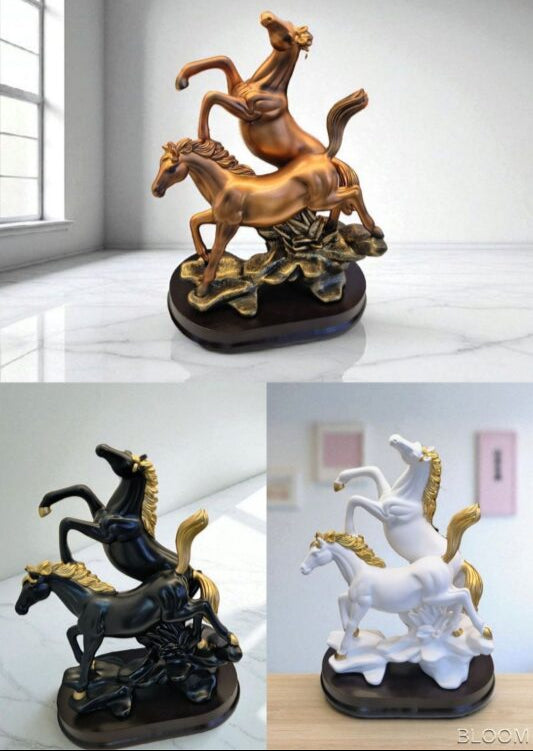 Add a touch of refined luxury with the white and gold option. The crisp white bodies of the horses are accented by shimmering gold manes and tails, creating a sophisticated and clean look that brightens any space.