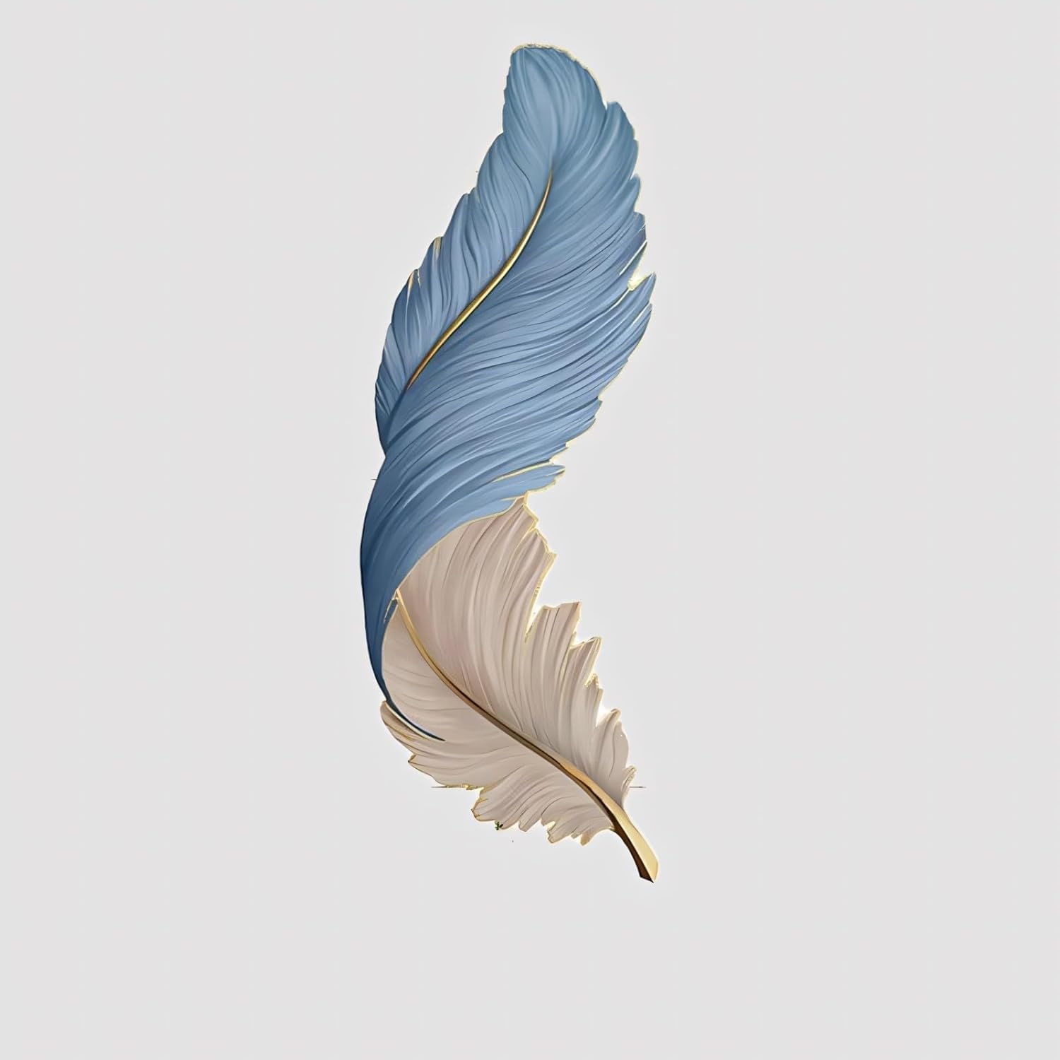 Illuminated Feather Design: This art features a mesmerizing design of two intertwining feathers in soft blue and white tones, highlighted by a subtle, warm LED light. The gentle glow creates a calming and sophisticated ambiance.