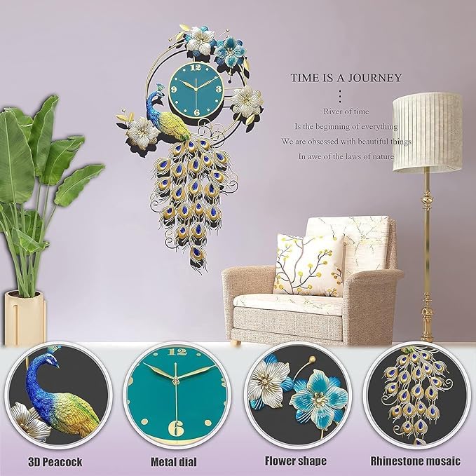 Bring luxury and artistry into your space with this exquisite Peacock Wall Clock. Order now to enjoy its timeless beauty and practicality!