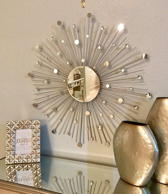 Elevate your decor with this elegant golden sunburst mirror, a perfect blend of modern design and classic charm. This mirror adds a touch of sophistication to any room, making it a standout piece for your home.