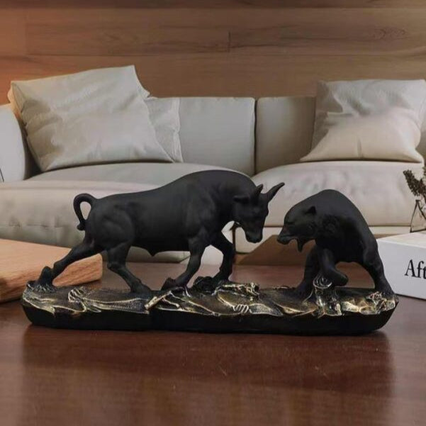 Introduce a dynamic and symbolic element to your decor with The Confrontation, a striking sculpture featuring a powerful bull and a formidable bear locked in a tense standoff. This piece captures a timeless representation of market forces, strength, and resilience, making it a compelling addition to any office, study, or living space.