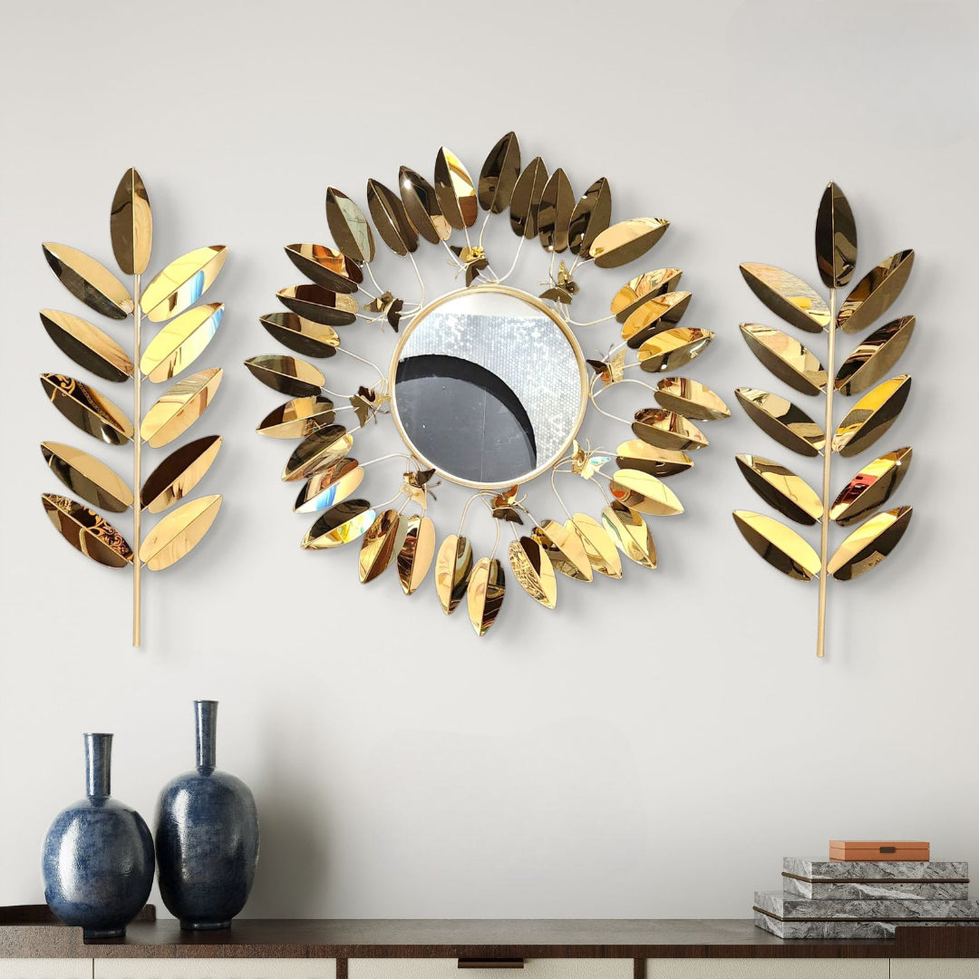 Radiant Leaf Mirror: Metallic Wall Decor