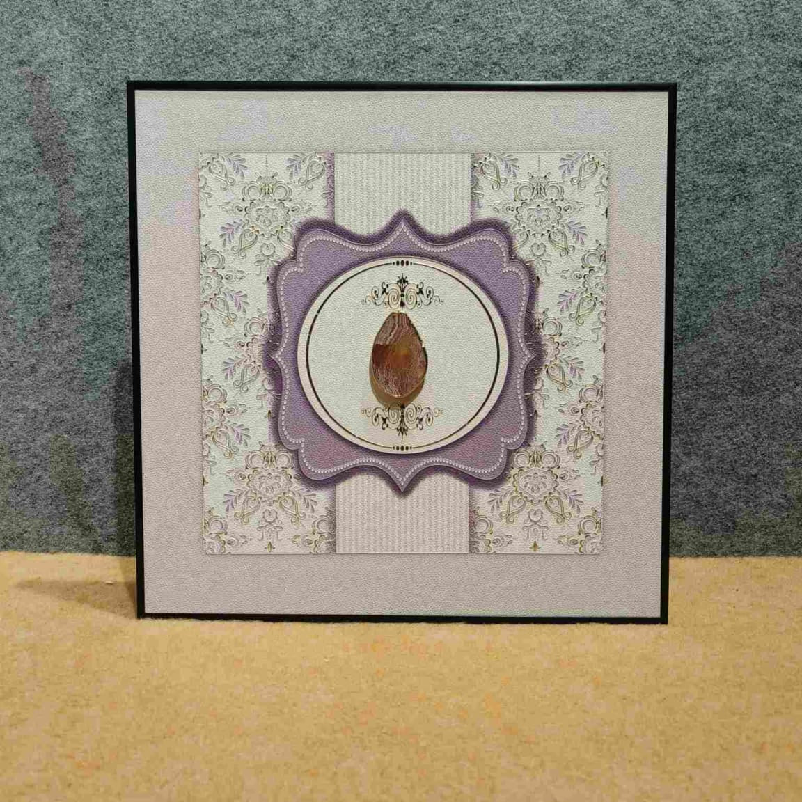 Bring a touch of sophisticated artistry to your home with the "Damask Seed" wall art, a unique piece that beautifully marries traditional elegance with natural simplicity. At its heart, this square artwork features a single, textured seed-like object mounted within a layered, ornate purple oval frame. This centerpiece is set against a background of classic damask patterns and subtle vertical stripes in soft lilac and white tones. The entire composition is finished with a pale pink border and a sleek black outer frame, creating a truly unique and refined visual statement.
