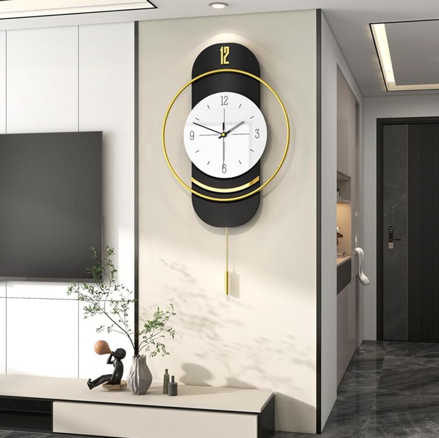 - Abstract Design: A captivating arrangement of a circular clock face, a sleek geometric frame, and a delicate pendulum creates a visually striking and modern aesthetic.