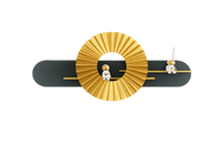 - Abstract Design: A captivating arrangement of a large circular element with a sunburst design, a sleek shelf, and an integrated LED light creates a visually striking and modern aesthetic.