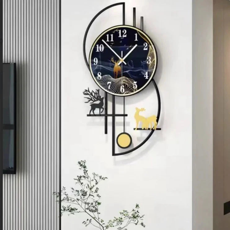 Stylish Wall Clock with Deer Silhouette and Geometric Design