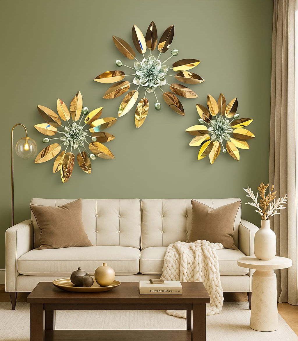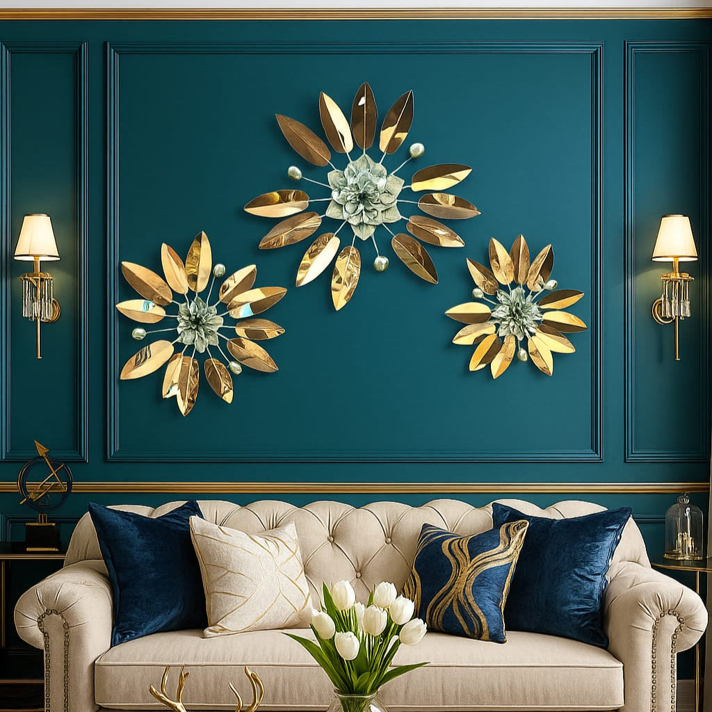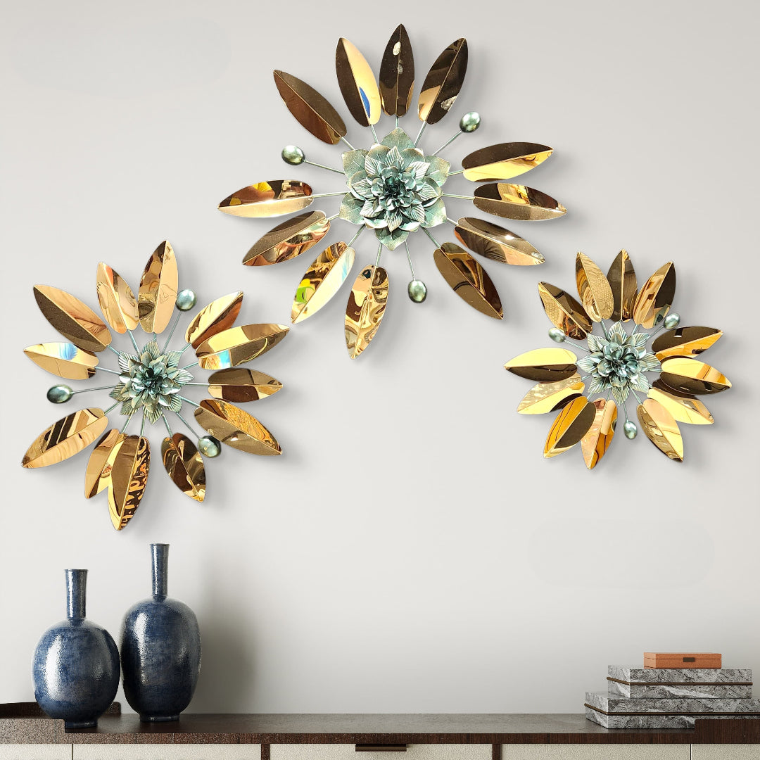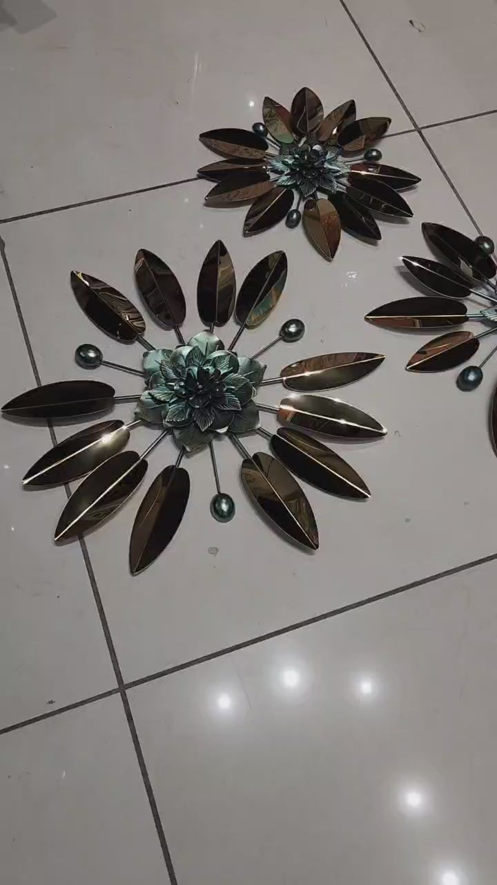 Design Theme: Showcases three circular floral arrangements with layered leaf motifs, symbolizing beauty and vitality, crafted to create a stunning wall display.