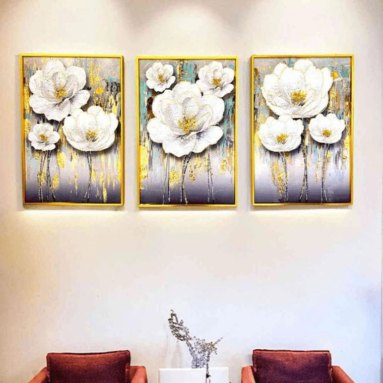 Elevate your home decor with this beautiful set of three Porcelain Crystal Paintings. Order now and experience the blend of artistic excellence and luxurious designs