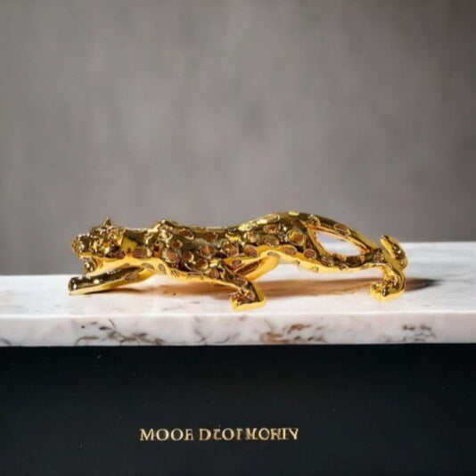 Whether placed on a bookshelf, a console table, or an office desk, the Golden Prowler adds a touch of luxurious, untamed elegance to any room.