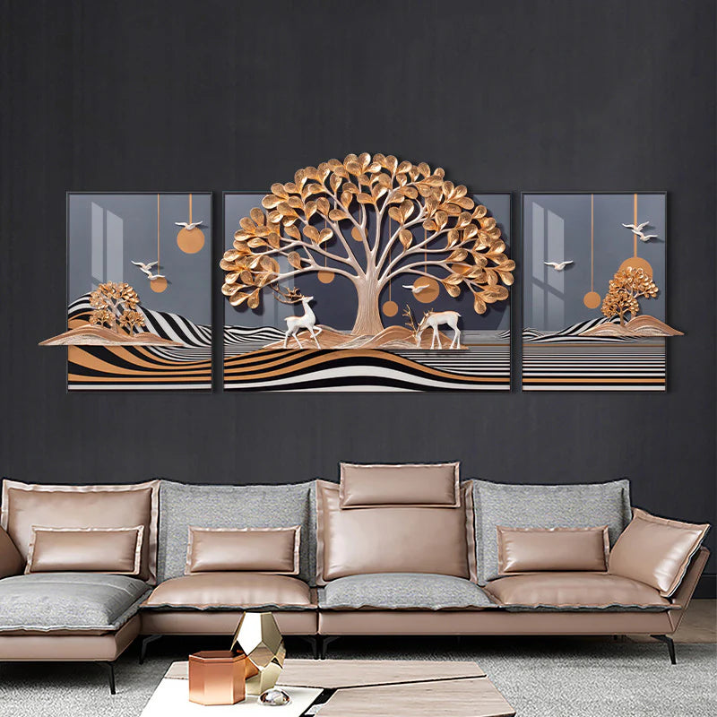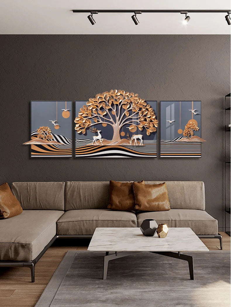 Transform your interiors with this stunning 3D wall decor set, featuring three intricately designed panels of altruistic trees. Crafted with premium materials and a modern aesthetic, this decor set adds depth, elegance, and a touch of nature-inspired charm to your space.