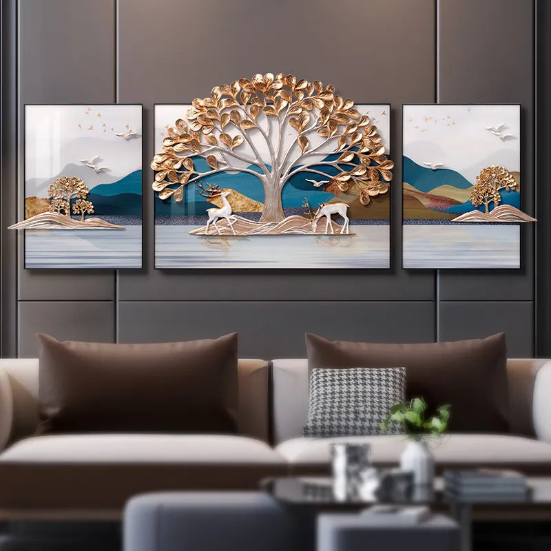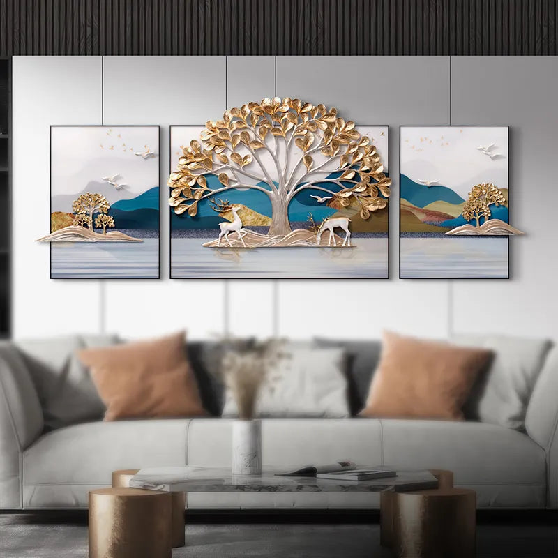 Transform your interiors with this stunning 3D wall decor set, featuring three intricately designed panels of altruistic trees. Crafted with premium materials and a modern aesthetic, this decor set adds depth, elegance, and a touch of nature-inspired charm to your space.