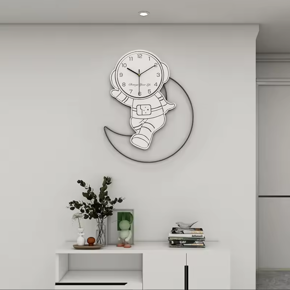 - Captivating Design: The clock showcases a mesmerizing design with an astronaut and the moon, creating a dynamic and visually striking statement piece that evokes a sense of wonder and adventure.